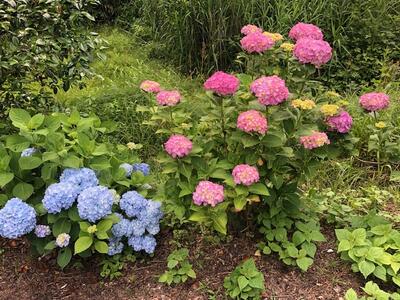 公園の庭には,季節のアジサイの花が可憐に咲いていました。