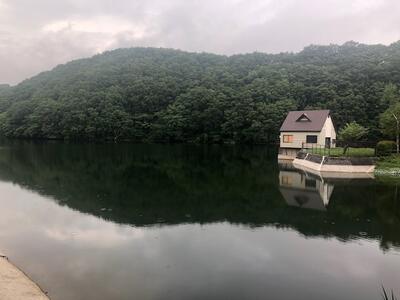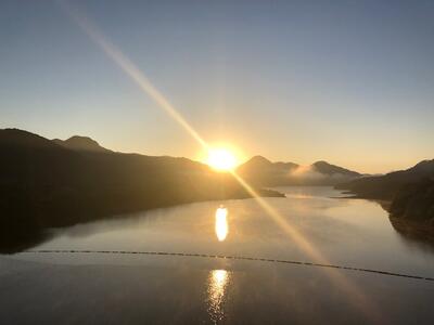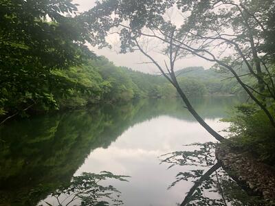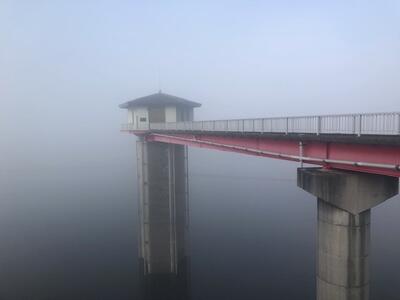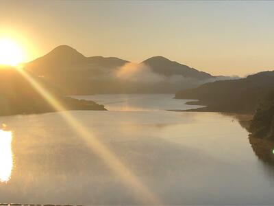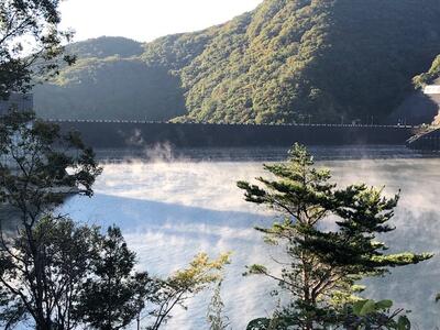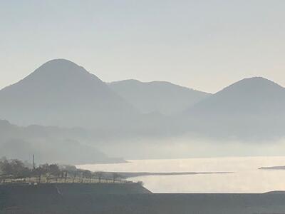 早朝,遠くに気嵐(けあらし)が見える七ヶ宿ダムに立ち寄りました。