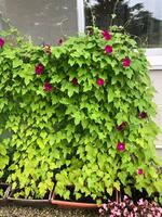 七校へ向かう途中,色鮮やかなタチアオイの花が咲いていました。