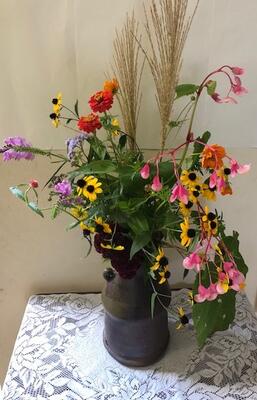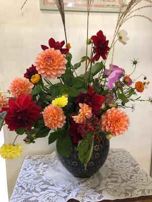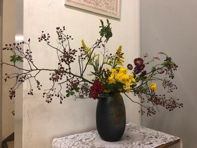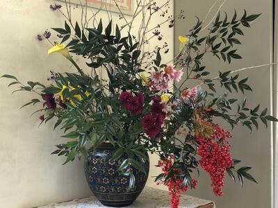 玄関前の生け花は,今週も「和」の雰囲気があります。