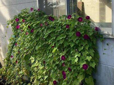 緑の中のアクセントとなる紫の花は,私たちの心を和ませてくれています。