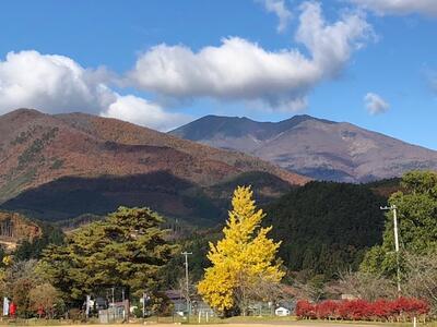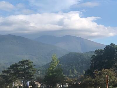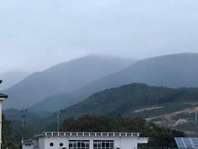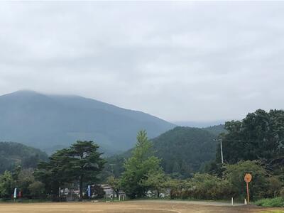 今日は,朝から雨模様の七ヶ宿です。不忘山も雲に覆われて,