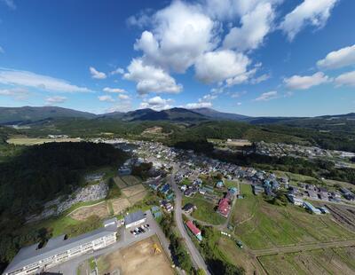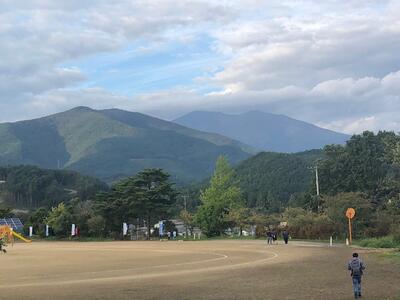 七校のグランドを降り,通学路から,東の方角を仰ぎ見ています。