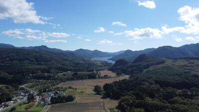 渡瀬(わたらせ)地区から見た,七ヶ宿ダムと山々です。