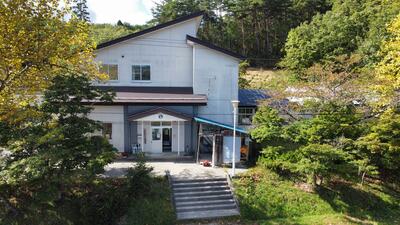 七ヶ宿町役場前のバス停留所から,通学路を歩いて