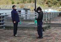 今日は「自然観察」のグループが,七ヶ宿ダムの下流にある,