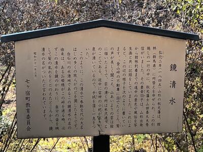 七ヶ宿町の干蒲(ひかば)地区にある鏡清水は,