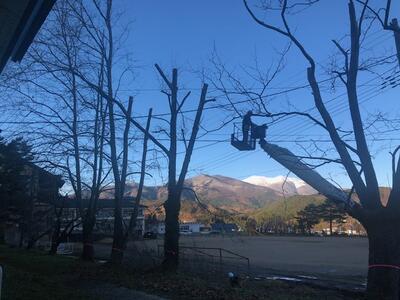 さて,七校は,今朝から,校舎前の樹木を「芯止め」という