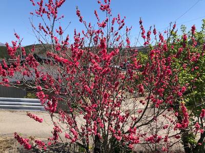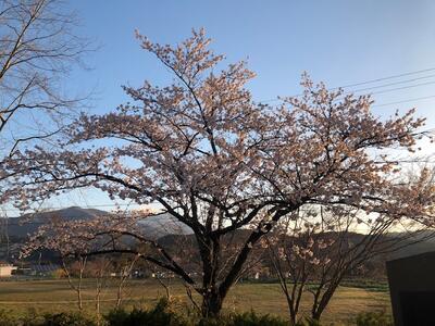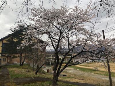 校舎の前にある七校桜です。遠目には,わかりにくいですが……