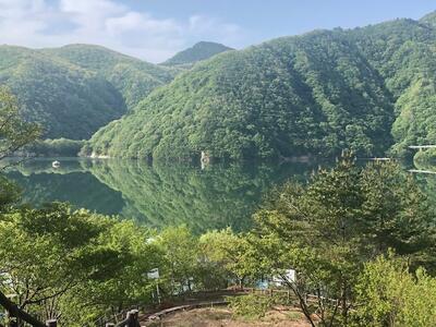 今日も、穏やかな七ヶ宿ダムの湖面が鮮やかに映えていました。