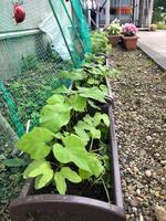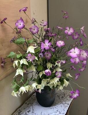 来月には,緑のネットにアサガオの蔓(ツル)が