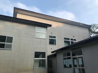 西側からの校舎と,一番高い屋根の雨どいの部分です。