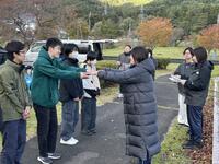 総合的な探究の時間「広報班」が、七ヶ宿おもてなしツアーを企画し、11月23日(土)に実施しました。マイクロバスを借り上げ、9時30分にJR白石駅を出発。今回は参加者を生徒及び生徒のご家族に限定させていただきましたが、参加者には石巻からいらっしゃった方も。最初の見学先は七ヶ宿ダム。説明や先導も広報班の生徒が行いました。ダムの見学中は雨が上がり、集合写真もバッチリ撮影できました。
