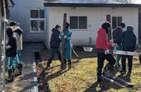 3年生が職員室の周りの雪囲いを行いました。今朝は冷え込んだため、積雪に備え今日の作業となりました。雪囲い用の柱を立て、横板を渡す作業です。3年生は雪囲いは3度目となり、作業ははかどりました。