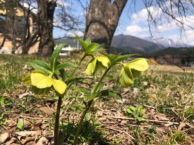 春を肌で感じられる七ヶ宿校。グランドの脇には,畑があります。
