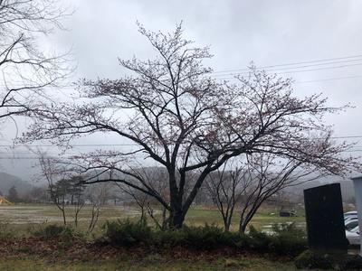 校舎側からグランドを眺めると,大きな桜の木があり,