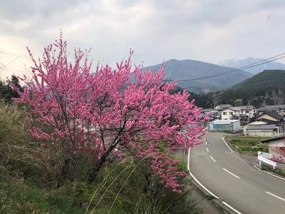 道ばたに,見事な枝ぶりの花桃(ハナモモ)が咲いていました。