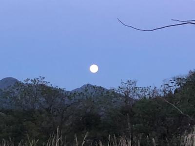 とても大きな満月。これから天空にのぼっていくのです。