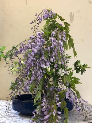 木々には,藤の花が高貴な色で咲いています。