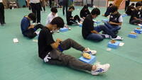 9月13日(土)仙台工業高校で「生徒の集い」が開催されました。生徒の集いとは、県内の定時制通信制高等学校の代表生徒が集い、自主性を高めるとともに生徒相互の連帯感を深めることを目的としています。今年度は、仙台駐屯地陸上自衛隊から7名の自衛隊員の方を講師としてお招きし、担架搬送や緊縛止血法などの救護訓練、自衛隊の救急車両の見学、防災講話等のグループ活動を行いました。本校の代表生徒である2年生4名もそれぞれの訓練に積極的に参加していました。今回の研修で学んだことをみんなに伝え、今後に生かして欲しいと思います。