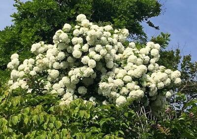 通学路には,テマリカンボク(手鞠肝木)の花が咲きました。