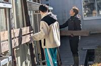 3年生が職員室の周りの雪囲いを行いました。今朝は冷え込んだため、積雪に備え今日の作業となりました。雪囲い用の柱を立て、横板を渡す作業です。3年生は雪囲いは3度目となり、作業ははかどりました。