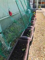 来月には,緑のネットにアサガオの蔓(ツル)が