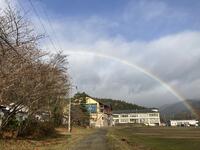11月29日(金)に1年生が町内清掃に出かけました。役場前バス停周辺、ファミリーマート周辺、及び町民グラウンド周辺の3班に分かれての作業となりました。当日は大きな虹がかかっていて、少しうきうきした気分で清掃に取りかかりました。床の掃き掃除、窓拭き、ゴミ拾い等をするうちに自分たちの気持ちもすっきりした1年生でした。