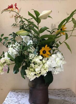 盛夏の時期ですが,通学路に「ガクアジサイ」が咲いてるのを