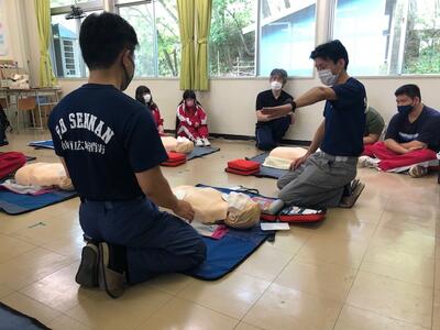 その後,心肺蘇生,AED使用の実技,気道異物を除去する