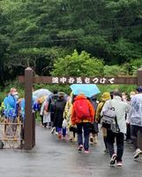 「七ヶ宿町」は,江戸時代に奥州街道から分かれ羽州街道に沿って‘七つの宿場町’が置かれていたことにその名が由来しています。そのような歴史と伝統ある町の風情を歩いて探訪する「わらじで歩こう七ヶ宿」に全校で参加しました。山伏さんのほら貝での激励を受け,県内外からの参加者総勢450人とともに,七ヶ宿スキー場を8時半に出発。ブナの湖→滑津小滝→親子松→安藤家本陣などを経て,七ヶ宿町役場までの約11キロの道のりを全員が踏破しました。