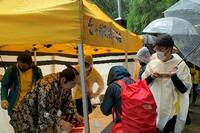 当日はあいにくの雨模様で出発前は大分テンションが低めでしたが,川沿いや山中を通る道中には,関所(通行手形改め所)や茶屋など休憩地点があり,地元野菜の漬物やスイカ,イワナの提供,川魚の放流体験などゆったりと一息つきながら,豊かな自然と歴史を肌で感じつつ,楽しんで歩くことができました。
