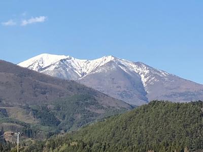 学校から遠くを眺めると,凜々しい姿の雪山が見えます。