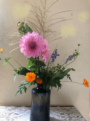 玄関には,いつもの美しい季節の花が活けて