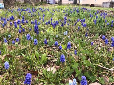 校舎の前には「ムスカリ」の花が咲きました。