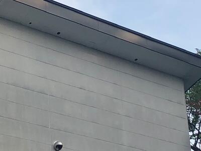 西側からの校舎と,一番高い屋根の雨どいの部分です。