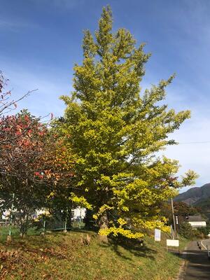 上の写真の右側に色づいて見える「イチョウ」の木です。
