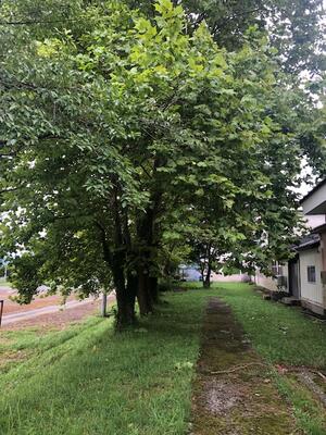 夏空のもと,裏山の松の木には,たくさんのセミが