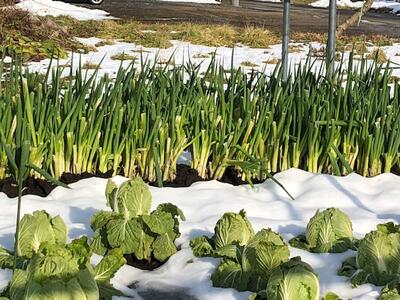 道の途中に,雪のあいだから,冬の野菜を見つけました。